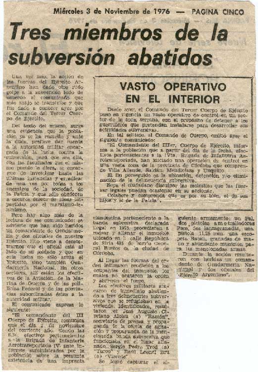 Sergio Trod fue asesinado en Córdoba el 2 de Noviembre del '76 en un "enfrentamiento".